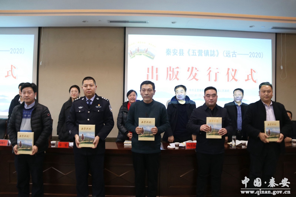 1月14日,秦安县《五营镇志》(远古—2020)出版发行仪式在大地湾印象酒店举行。省委专用通信局副局长张小锐,甘肃建投天水(区域)管理公司董事长王军,兰州军区总医院信息科主任王行高,空军试验基地卫生科原副团职科长宋斌,西部战区940医院主任医师、教授杨旭凯,兰州石化医院放射科主任、副主任医师薄茂盛,兰州铁路检察院副检察长薛紫衡等五营籍嘉宾受邀出席仪式,县政协主席杨喜春,县委常委、宣传部部长常乐,县人大常委会副主任胡继仁及原县志办、五营镇历任党委书记、编委会全体成员,镇属相关单位和部分村代表共计40余人参加发行仪式。