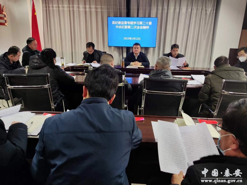 1月12日,秦安县纪委常委会在县行政办公中心1002会议室组织召开专题会议,专题学习二十届中央纪委二次全会精神,县委常委、县纪委书记、县监委主任张天龙主持会议。