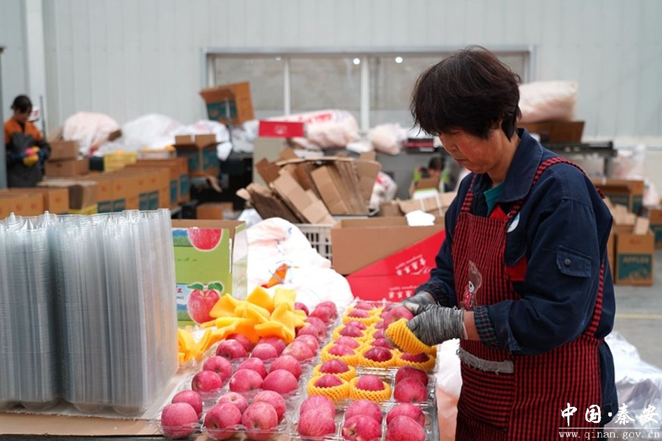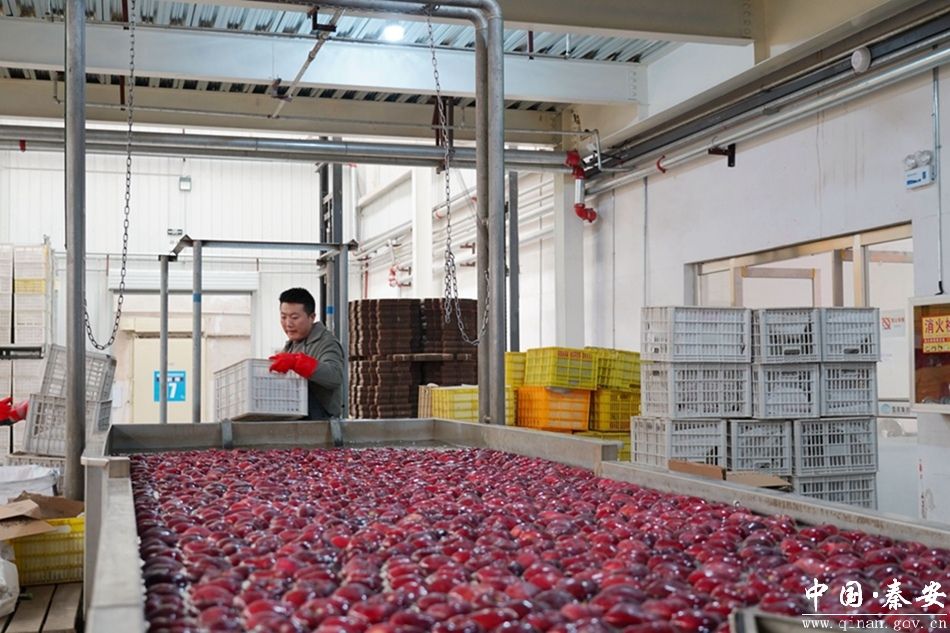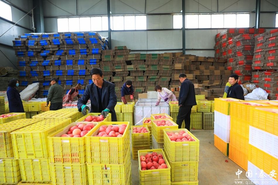 作为一家集果品收购、贮藏、加工于一体的省级产业化龙头企业,秦安雪原果品有限责任公司年收购果品1.5万吨,年销售额超2亿元。走进秦安雪原果品有限公司的加工车间,一幅忙碌的画面映入眼帘,整齐划一的生产线、高速运转的机器、分拣包装的工作人员。经过全自动水洗、烘干、全局扫描等多个环节,一颗颗红艳娇俏的“雪原苹果”脱颖而出,按照果品质量,工人们轻车熟路地分拣、贴标,将相同品质的苹果分装在规格统一的包装箱中。