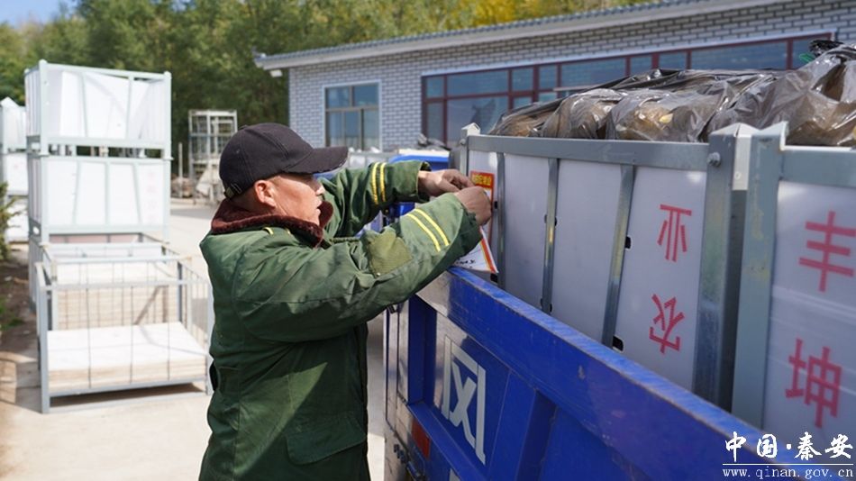 苹果销售和收购是大事,关系着果农收入和涉果企业的发展。走进秦安县魏店镇贵园宏果业有限公司,记者看到,从各个代收点往来运输苹果的车辆络绎不绝,叉车不停地取下打包好的苹果包装箱,贴上标签后入库冷藏。果农也将自己的苹果送来储藏,负责人逐一登记着每户果农的苹果的品种和数量,然后入库代储。负责人何义义说:“目前储藏的果品主要分三部分,第一部分是公司自己收购,第二部分是当地群众储存,第三部分是外地客商代存。”