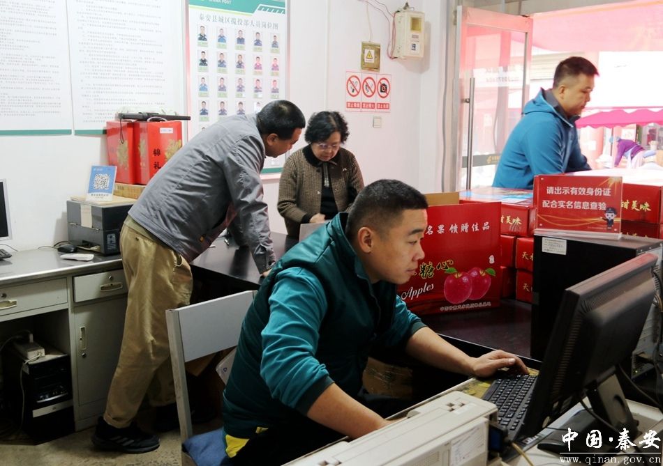 “我们今年通过与县商务局合作,给果农每箱优惠1元,针对果农销售难的问题,我们为果农上门设计,拉箱发运,为农民解决最后一公里的难题,从今年苹果销售季开始,累计全县共完成销售20万箱,总计收入200万元,目前全县共有22个揽投点,代办点342个。”中国邮政秦安县分公司揽投部经理李潇介绍道。