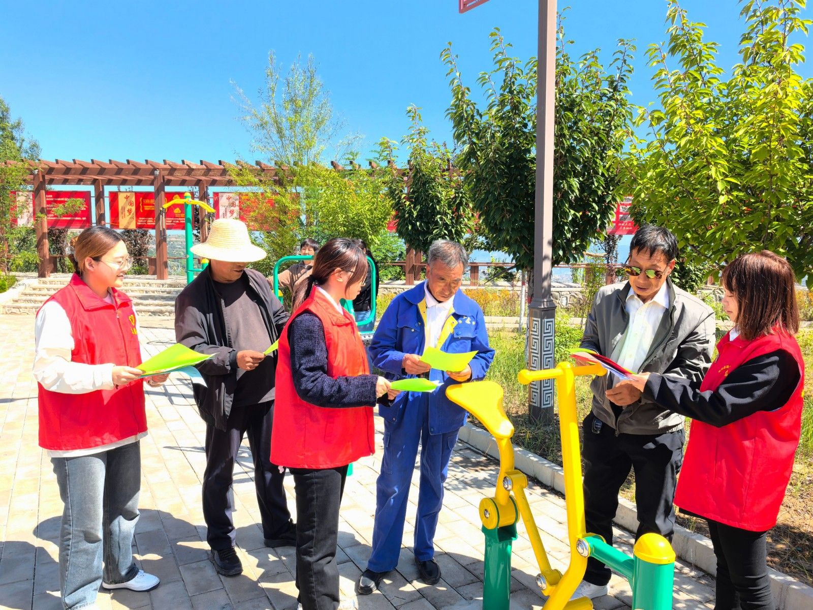 志愿者发放宣传手册