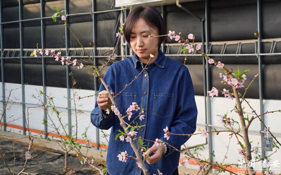 此次桃花盛开的一号棚内,种植的正是秦安知名品种“北京七号”。甘肃省农业科学院林果花卉研究所、国家桃产业技术体系兰州综合试验站站长牛茹萱透露:“这个棚是国家桃产业技术体系兰州综合实验站技术支撑的一个棚。初衷是做一个错峰上市,让人们在春节就能吃上秦安的‘北京七号’。”目前,该试验棚配备了制冷、供暖等先进手段,正处于结果前的关键试验阶段。