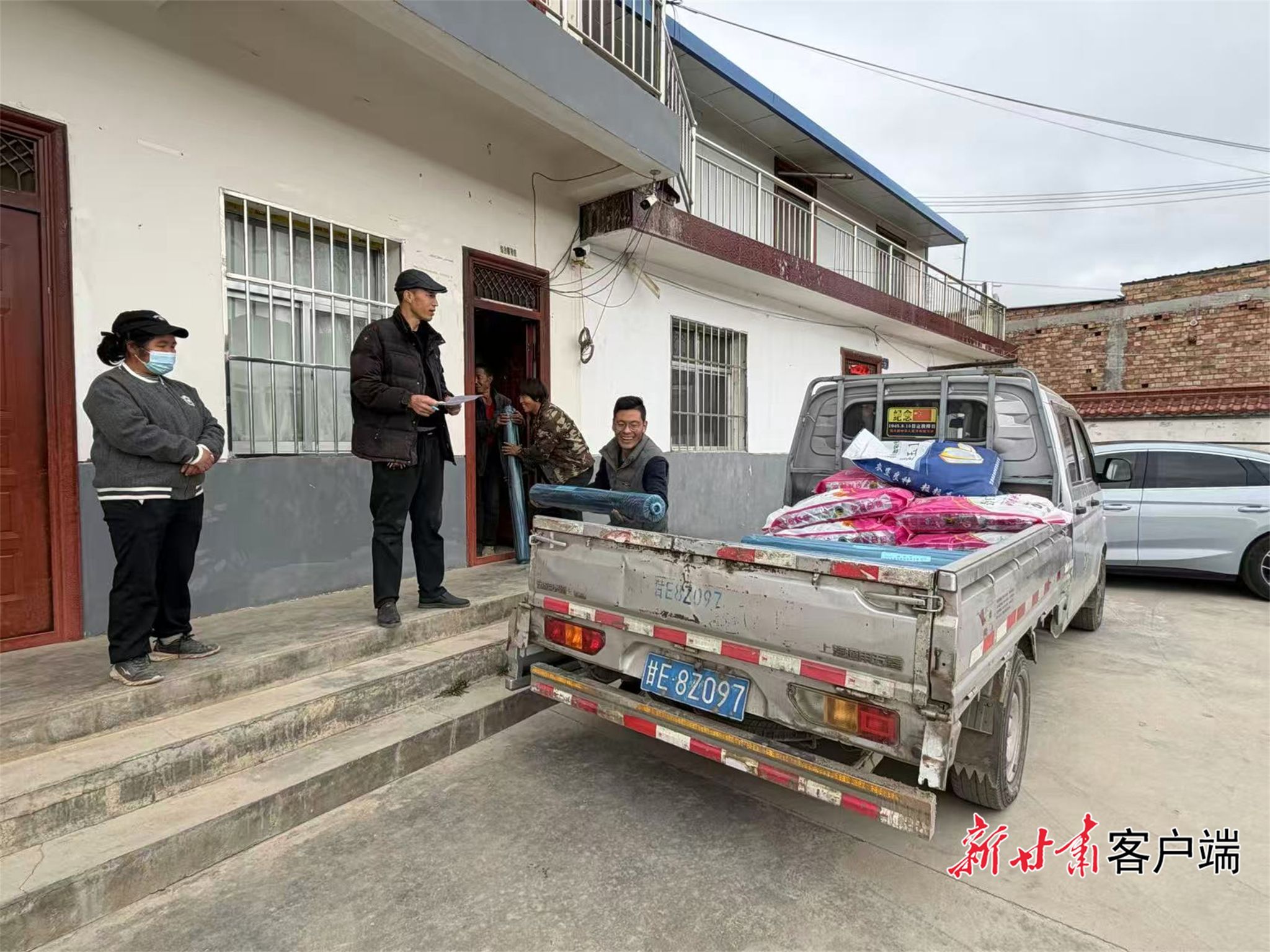物资发放现场,一派热闹有序的景象。一辆辆满载马铃薯原种、玉米种子和地膜的货车整齐停靠,一袋袋包装严实的农资码放得整整齐齐,在春日暖阳下格外醒目。甘肃农垦驻村帮扶队员们早早来到现场,分工协作、有条不紊,对照农户信息台账逐一核对,全程贴心服务让整个发放流程高效顺畅。