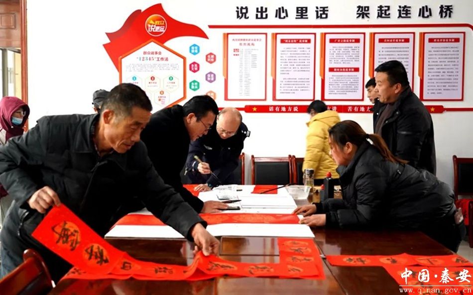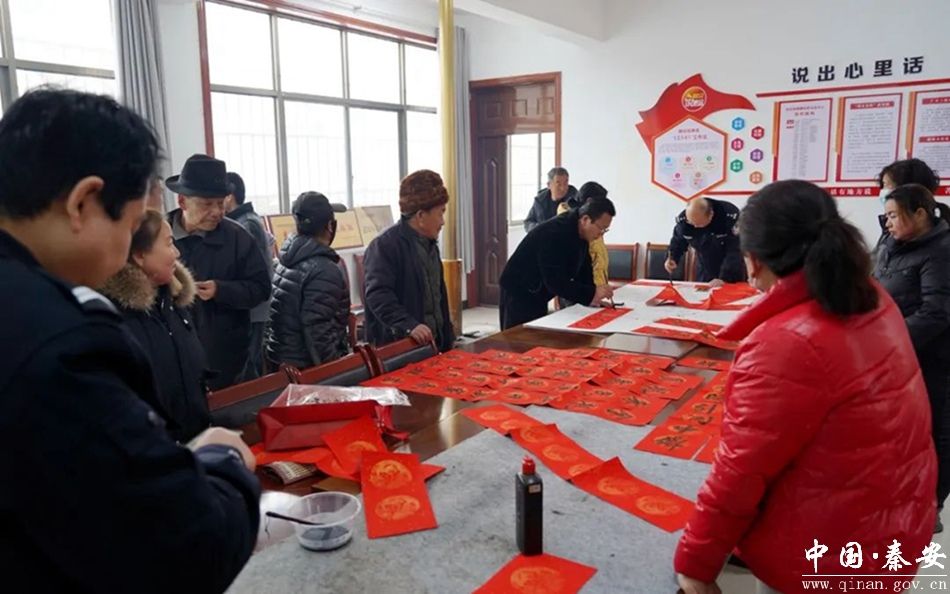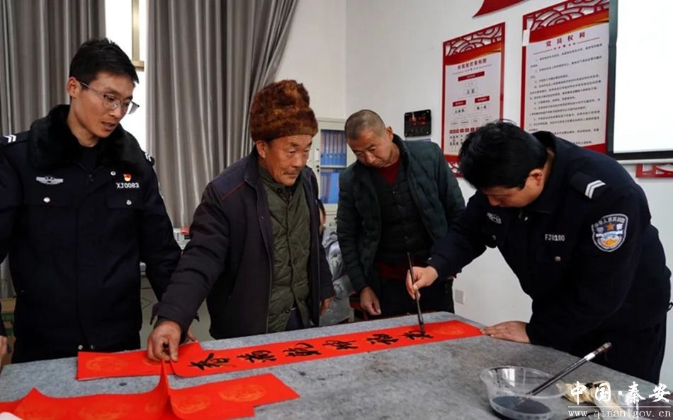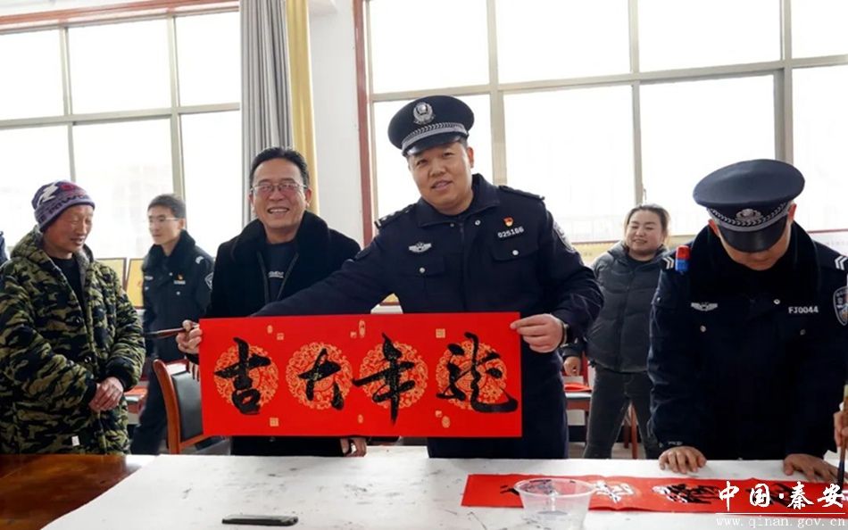 2月2日,秦安公安文联联合西川派出所深入西川镇牌楼、川口村开展“迎新春、话平安、写春联、送百福”文化下基层活动,为群众送上吉祥喜庆的春联和诚意满满的新春祝福。