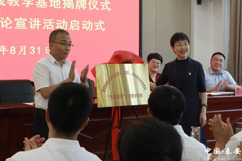2023年8月31日,北京科技大学马克思主义学院—秦安县委党校“大思政课”实践教学基地揭牌仪式暨宣讲活动在县委党校举行。北京科技大学马克思主义学院党委书记张颖,秦安县委副书记、县委党校校长姚建国为“大思政课”实践教学基地揭牌。北京科技大学马克思主义学院发挥人才、智力和资源优势,利用“大思政课”实践教学基地这个平台,助推秦安县委党校在“完善办学思路、健全规章制度、创新科研工作、提高培训质量”等方面更好地发挥职能作用,努力做好新时代传道、授业、解惑工作。