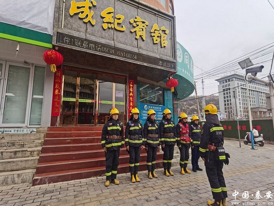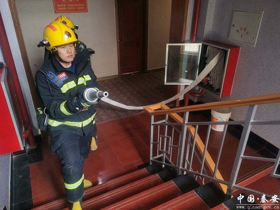 为熟悉掌握辖区重点单位消防安全管理情况,全面提升消防救援队伍处置宾馆饭店火灾事故实战水平。近日,秦安县消防救援大队深入辖区单位成纪宾馆开展“六熟悉”工作及灭火救援实战演练工作。