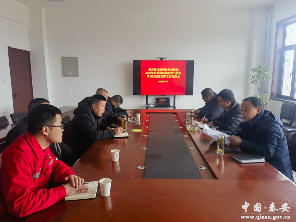 为让群众过上欢乐祥和、健康平安的新春佳节,1月17日,秦安县住建局召开2023年度春节期间供暖供气供水及城区亮化保障工作安排会,县市政设施服务中心、自来水公司、天然气公司及城北、城中、中泰三家供热公司负责人参加了会议。