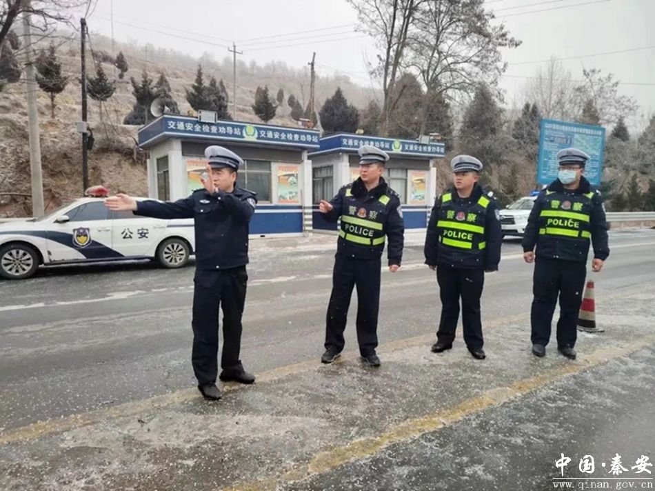 2月21日,秦安县公安局交警大队负责人带领督导组深入辖区各路面临时执勤点,督导检查恶劣天气疏堵保畅工作,并看望慰问了坚守岗位的一线执勤民辅警。