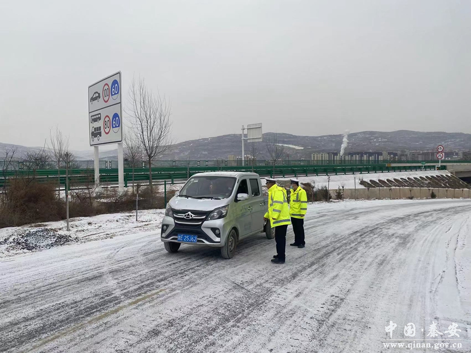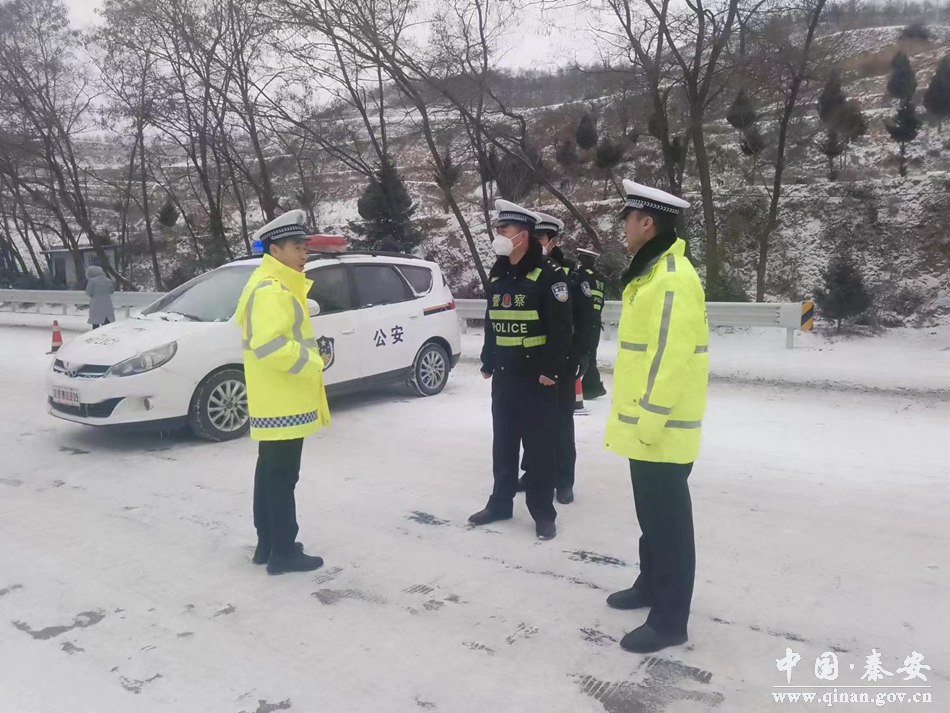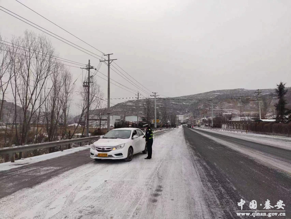 秦安县公安局交警大队负责人第一时间深入辖区路面一线各执勤岗点实地查看路况,对道路管控、应急联动、危险路段排查、故障救援、冰雪清除等情况进行了督导检查,嘱咐民辅警在加强雪天道路交通管控的同时,注意自身安全防范,确保恶劣天气管控到位。