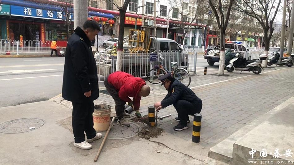 按照城市精细化管理要求和创建全国县级文明城市标准,秦安县城市管理行政执法局“坚持以人民为中心的发展思想”,在日常管理中把市政基础设施作为重点,从巡查、管理、维护三个方面入手,扎实做好市政基础设施安全维护运行工作,不断提升城市管理水平。