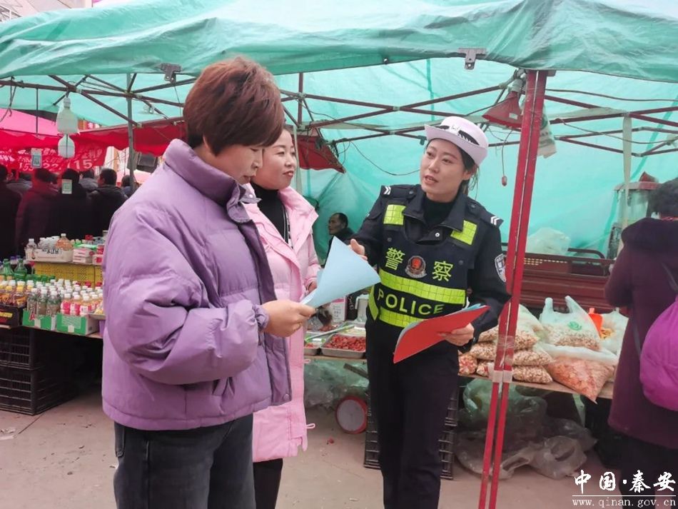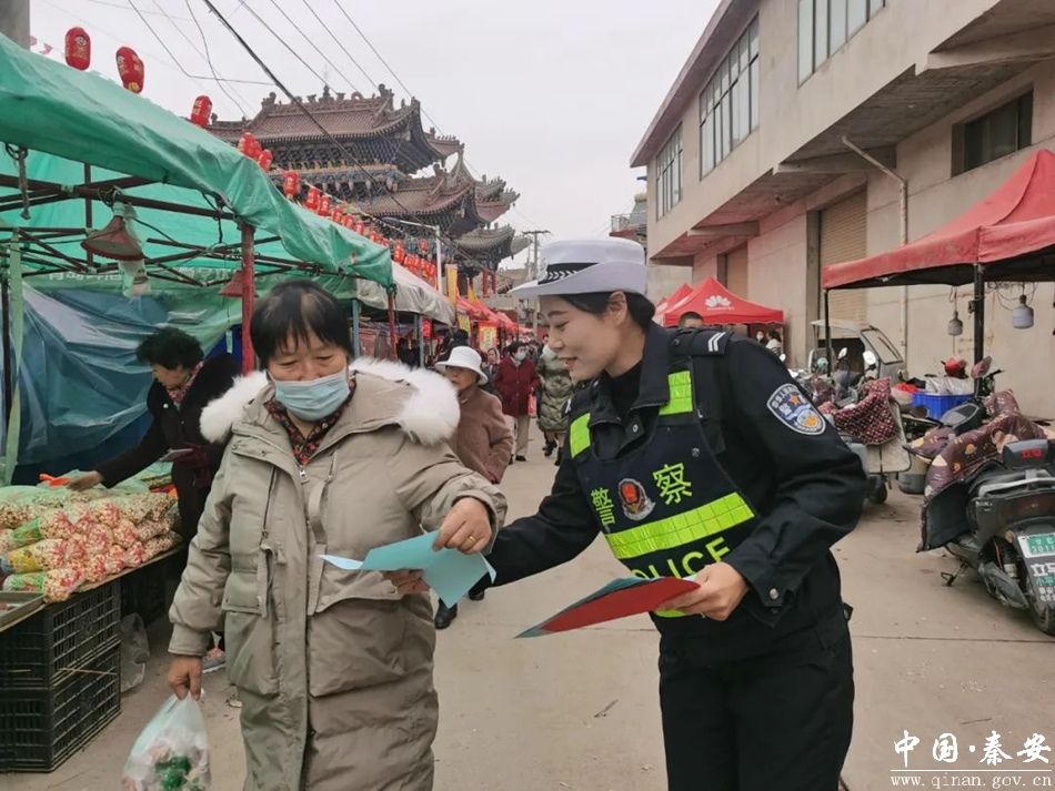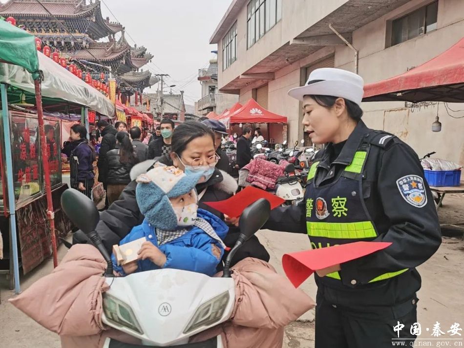 3月5日,秦安县公安局交警大队到西川镇宋场村庙会现场开展交通安全宣传活动,宣讲民警在大戏台下、货棚前、小吃摊点等地,向群众讲解交通安全知识,营造良好的道路交通安全宣传氛围。