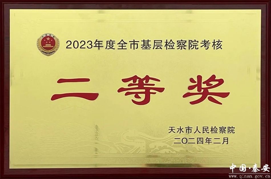 在3月6日召开的全市检察长会议上,天水市人民检察院对2023年度全市考核先进基层院进行了表彰,秦安县人民检察院综合考评位列全市第三,荣获2023年度全市基层检察院考核二等奖。
