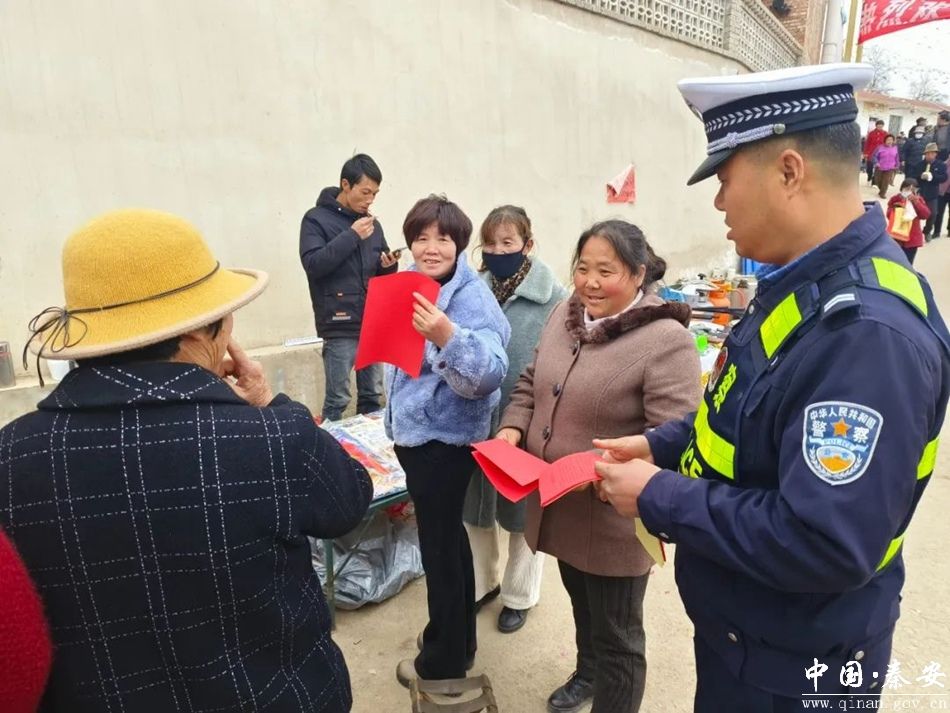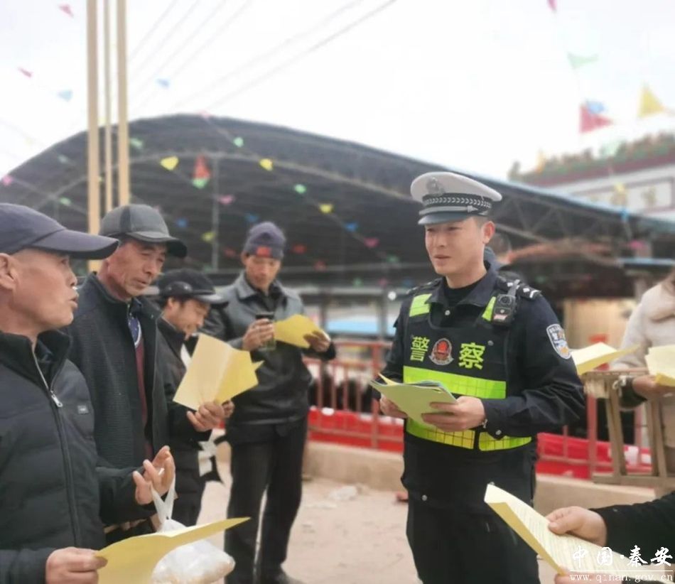 3月12日,秦安县公安局交警大队宣传民辅警深入刘坪镇二爷庙,充分利用庙会人流集中的特点,在庙会现场开展交通安全宣传活动。