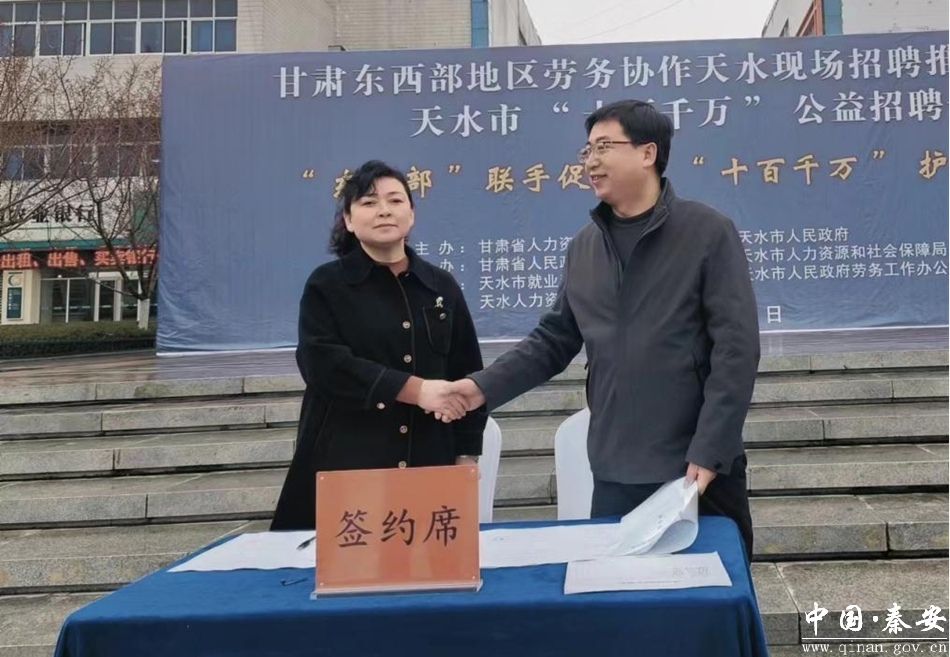 借助招聘活动的东风,秦安县与敦煌市、嘉峪关市、金塔县等7个地区达成合作意向并签订了甘肃省内东西部劳务合作框架协议,为促进地区间人力资源和就业岗位优势互补,推动地方经济高质量发展奠定了坚实的基础。