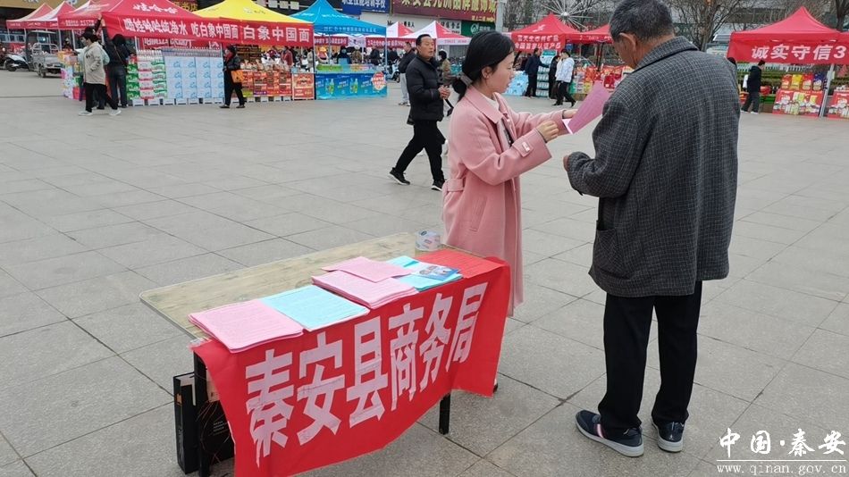 为进一步强化消费者权益保护,营造安全放心消费环境,3月15日,秦安县商务局在兴国文化广场结合“3·15”国际消费者权益保护日,精心组织开展商贸领域单用途预付消费卡宣传活动。