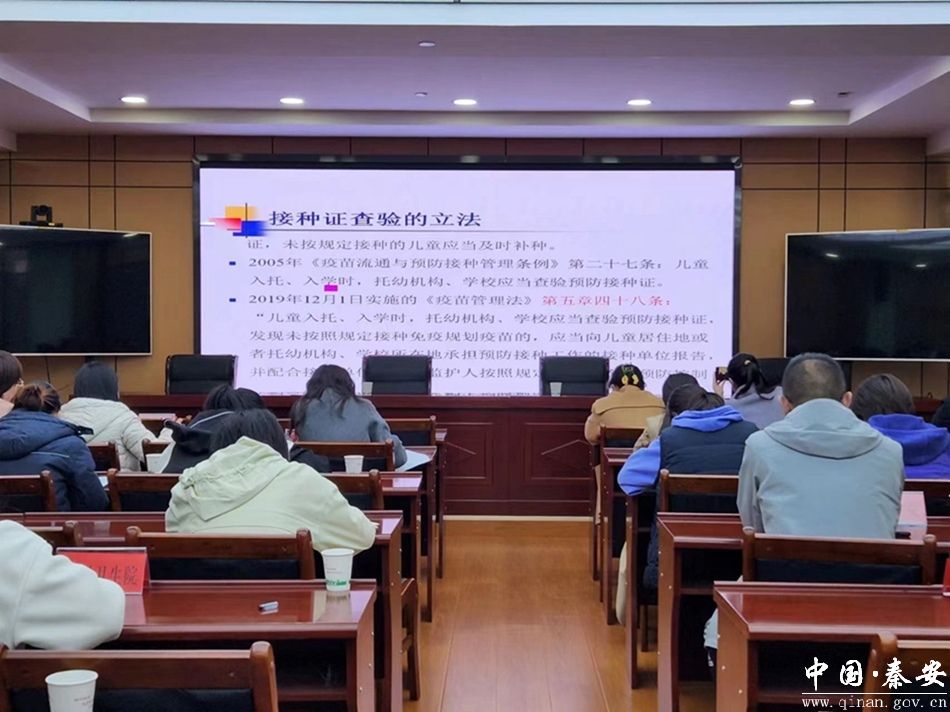 为进一步做好春季传染病防控, 有序开展入学查验证、免疫查漏补种等工作,3月27日,秦安县疾控中心组织召开全县春季传染病防控及入学查验证工作会议。县卫健局相关负责人,各镇卫生院院长,疾控中心各股室负责人,校医共80余人参加会议。
