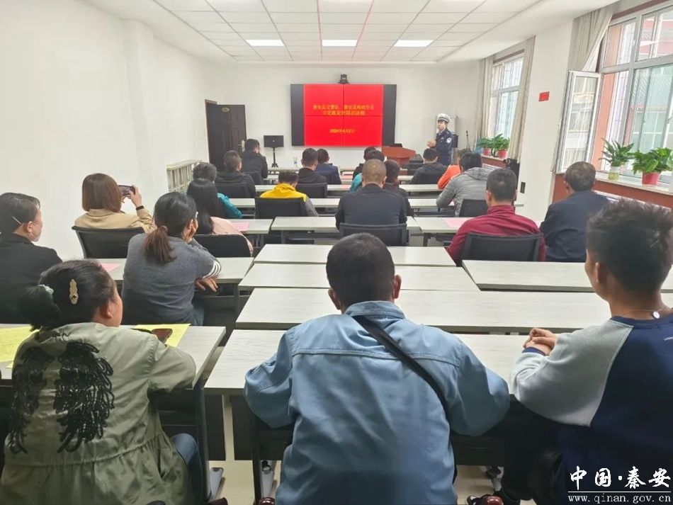 4月2日,秦安县公安局交警大队组织宣传民辅警深入秦安邮政分公司开展交通安全宣传活动。