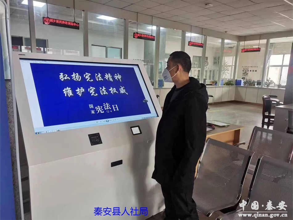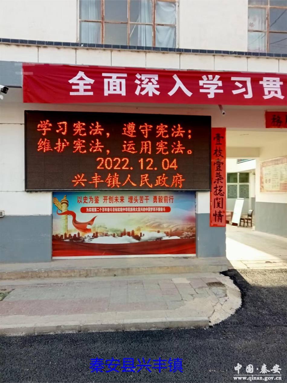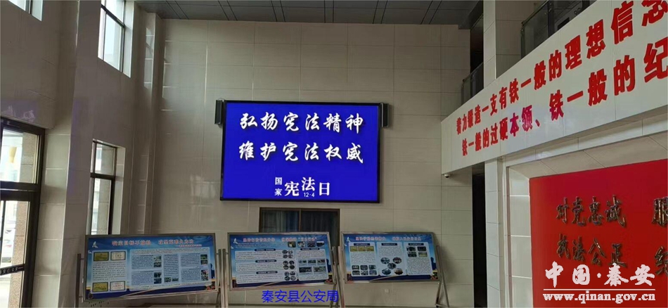 12月4日12:04分,秦安县在各级机关单位、政务大厅、公共场所电子显示屏、楼宇户外大屏、服务窗口触摸屏和公共交通移动电视上等,同步点亮“弘扬宪法精神,维护宪法权威”宣传活动,形成了“万屏”共同宣传宪法氛围。各类公共场所电子显示屏滚动播放“弘扬宪法精神、维护宪法权威”“学习宣传贯彻党的二十大精神,推动全面贯彻实施宪法”,营造了尊崇宪法、学习宪法、遵守宪法、维护宪法、运用宪法的良好氛围,使宪法宣传走到群众身边走进群众心里,为秦安县营造了良好的法治环境。