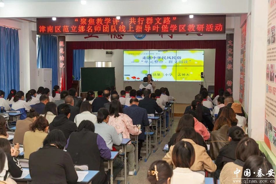 活动中,叶堡镇中心小学秦莉莉老师进行了以“探索民间故事的奥秘”为议题的1+X群文阅读展示课,充分发掘了民间故事的育人价值,努力落实新课标理念,构建学习任务群,设置了三个学习任务,由课内到课外,再总结探索民间故事的特点,三个任务层层递减、螺旋上升,由内容整体的感知聚焦到情节和人物的分析,再回归到整体,说感受、启示,符合学生的认知规律;秦安县第三小学孟赟杰老师进行了以“走进中华民风民俗”为议题的单元统整课,他以老舍先生的《北京的春节》为支架,把本单元的课文《腊八粥》《古诗三首》《藏戏》整合串联,让学生了解了中华民风民俗,并在此基础上,延伸拓展舒乙的《北京的春节》和冯骥才的《花脸》,是一节优秀的群文阅读整合课。