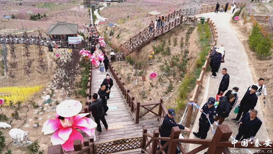 4月12日,2024年甘肃秦安桃花会开园仪式在刘坪镇秦洼村举行。为确保开园仪式各项活动顺利进行,秦安县公安局严格按照县委、县政府统一部署,提前谋划、精心部署,以查隐患、堵漏洞、防事故、保安全为重点,以最实举措圆满完成了“桃花会”开园仪式活动安保任务。市公安局党委委员、副局长肖勇带队深入活动现场开展督导检查,县政府副县长、县公安局党委书记、局长薛天胜一同检查。