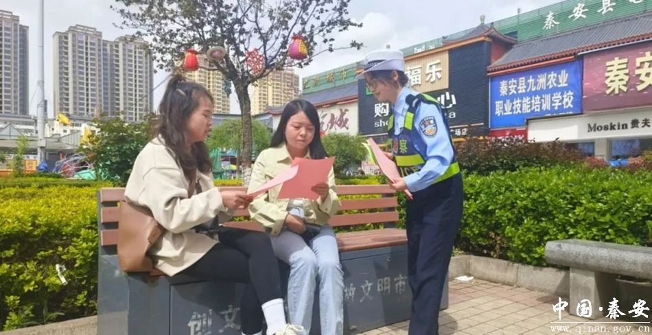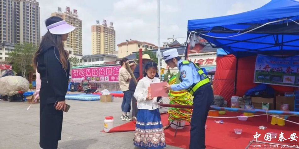 4月22日,秦安县公安局交警大队组织宣传民辅警深入兴国文化广场,积极开展交通安全宣传活动,把交通安全法律法规普及给广大群众。