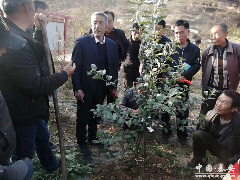 培训会上,专家组紧紧围绕县域林果产业发展现状、果品交易、果园冬季管理、春季修剪及防冻害等关键技术进行了全面系统讲解。随后,专家组一行深入果园,就苹果树双枝桥接预防腐烂病、老果园改造提升、桃树宽窄行密植、花椒免拉枝栽培技术等对果农进行了指导,手把手示范怎么给果树压枝整形,如何根据树势进行合理修剪,让果树形成合理的形状,利于开花坐果,从而达到果树、果园健康发展,增产增收的目的。