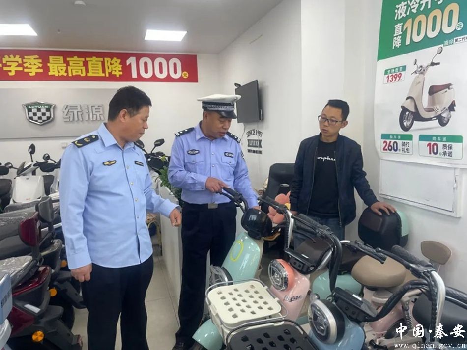 为进一步提高电动车驾驶员的交通安全意识,强化源头管理,消除安全隐患,落实“严管十条”(春季版)及“减量控大”工作要求,有效预防和减少电动车交通事故的发生。5月6日,秦安县公安局交警大队联合县市场监督管理局深入辖区多家电动自行车销售点开展大宣传大检查活动,积极开展隐患排查检查及交通安全宣传工作。