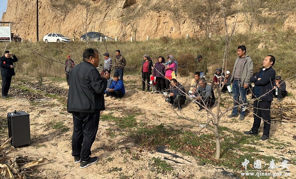 11月7日,秦安县果业局负责人带领高级农艺师、病虫害防治专家、技术干部到魏店镇伏峡村、陇滩村、魏坡村开展老旧果园改造技术培训。