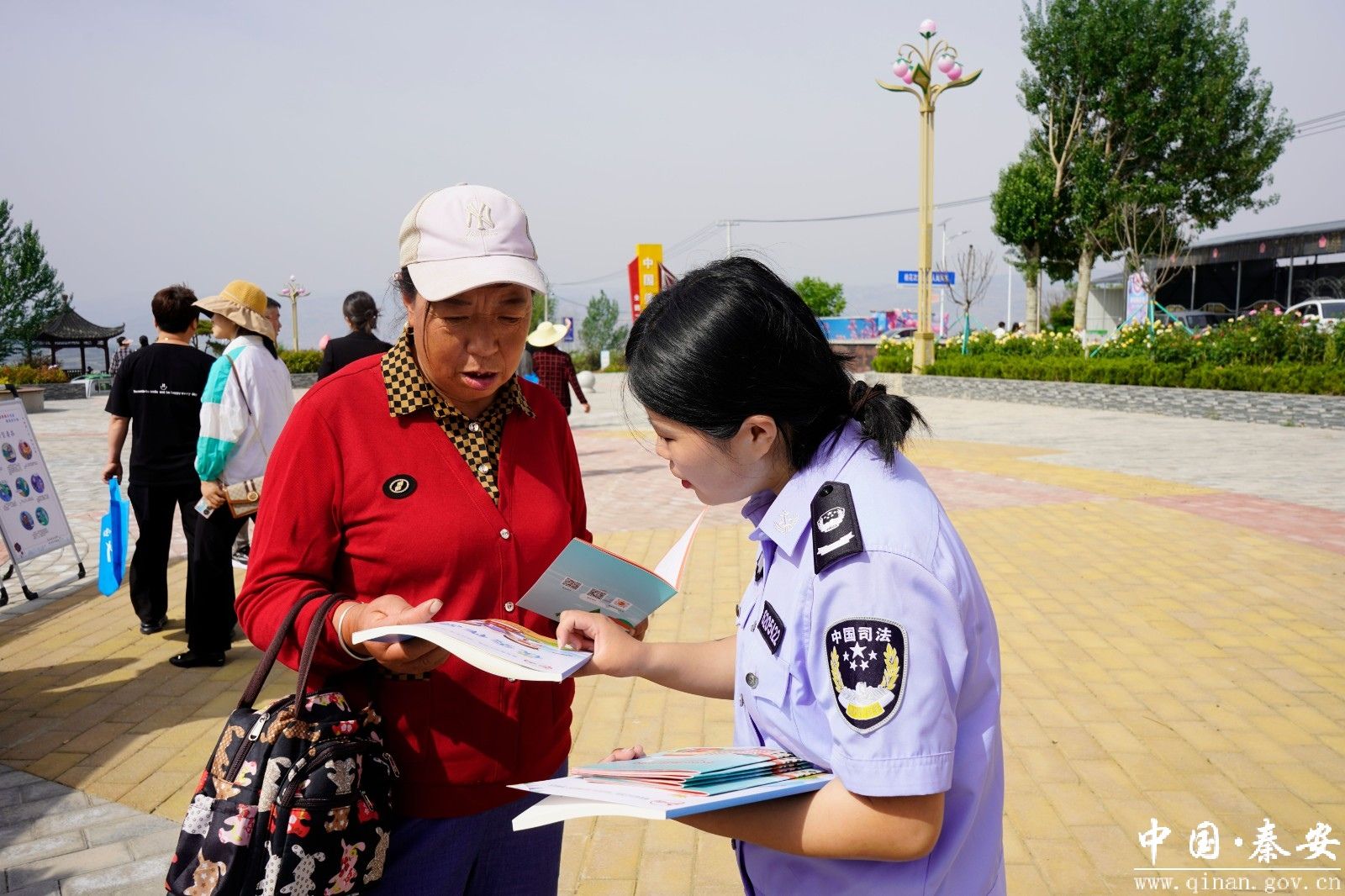 5月17日,秦安县司法局在刘坪镇秦洼村参加全县“陇原巾帼普法乡村行”活动启动仪式,并结合活动积极开展民法典宣传。