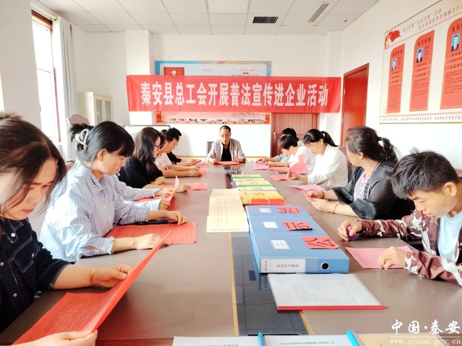 为进一步增强企业职工的法律意识,切实保障和维护企业职工的合法权益,构建更加和谐稳定的劳动关系,5月28日,秦安县总工会组织普法小组深入县联合快递公司、燕子爱心家政服务有限公司、甘肃华康药业有限公司等企业开展普法宣传进企业、进车间活动。