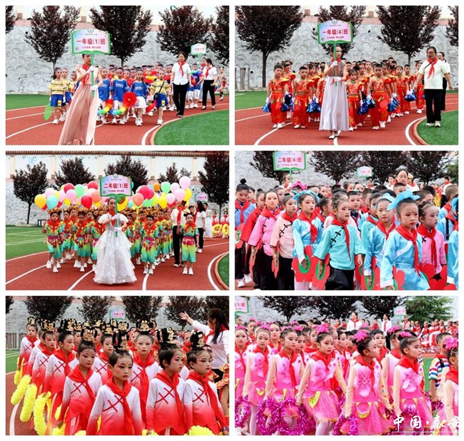 伴随着激昂的音乐,由各班级组成的方队迈着整齐的步伐,喊着响亮的口号进行了入场。