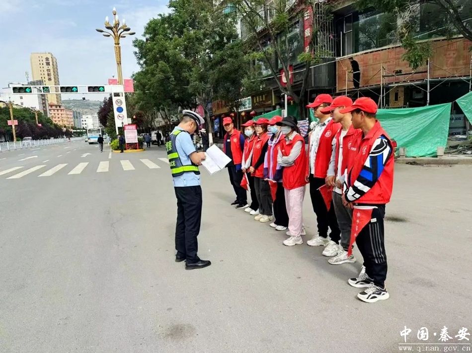 为进一步提升辖区“新驾驶人”交通安全意识、法治意识、文明意识,普及交通安全法律法规,从源头上预防和减少道路交通事故发生,6月3日,秦安县公安局交警大队携手“新驾驶人”开展文明交通劝导志愿服务活动。