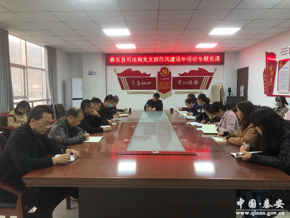 10月14日,秦安县司法局党支部组织开展10月份“主题党日”暨作风建设专题党课活动,机关全体党员干部参加活动。 活动开始,支部副书记以《强化作风建设 激发担当作为》为题,以《习近平谈治国理政》第四卷一书中《自我革命是我们党跳出历史周期率的第二个答案》重要文章为主线,围绕全面从严治党这个主题,结合全系统作风建设年活动,提出了四点建议,即要对党忠诚老实,保持昂扬进取斗志;要勇于担当尽责,始终敢闯敢拼;要坚持实干快干,做到善作善成;要始终为民奉献,走好群众路线。