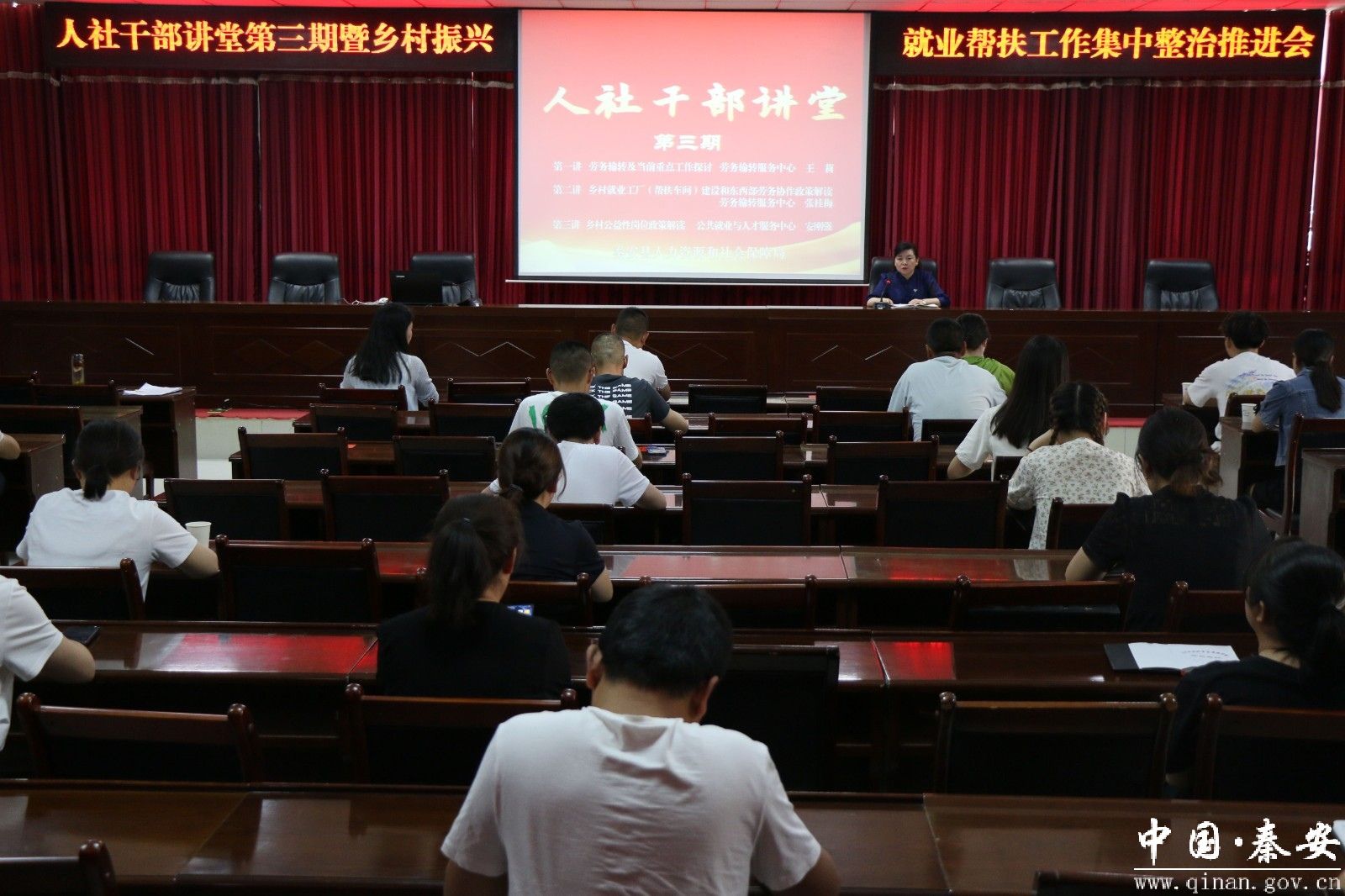 6月14日,秦安县“人社干部讲堂” 第三期暨就业帮扶工作集中整治推进会在县人社局召开。县人社局领导班子、局属各单位、机关各股室干部职工及各镇业务经办人员共80余人参加会议。