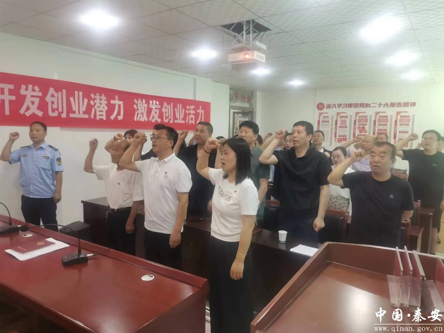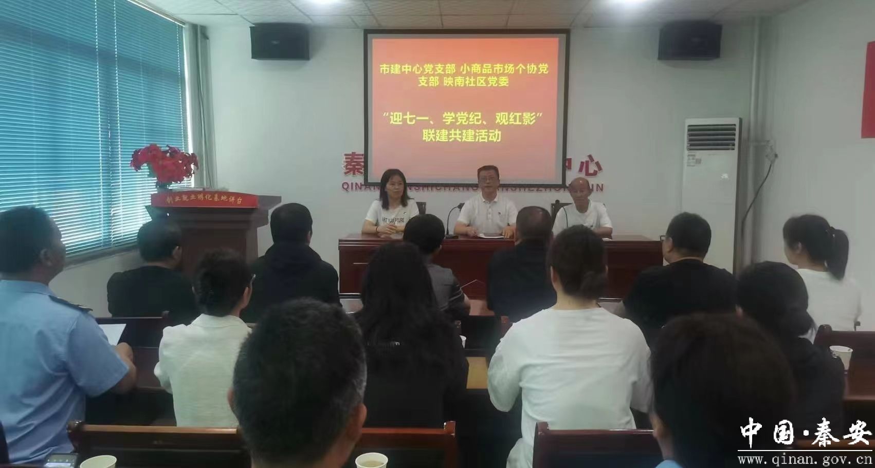 为庆祝中国共产党成立103周年,6月28日,秦安县市建中心党支部、映南社区党委、小商品市场个协党支部联合开展以“迎七一、学党纪、观红影”为主题的联建共建活动。