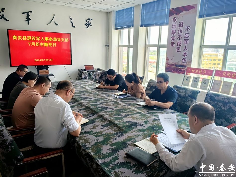 为庆祝中国共产党成立103周年,进一步增强党支部的政治功能和组织功能,弘扬党的光荣传统和优良作风,增强党组织的凝聚力、战斗力和号召力,在“七一”建党节期间,秦安县退役军人事务局党支部组织开展了庆祝建党103周年系列活动。