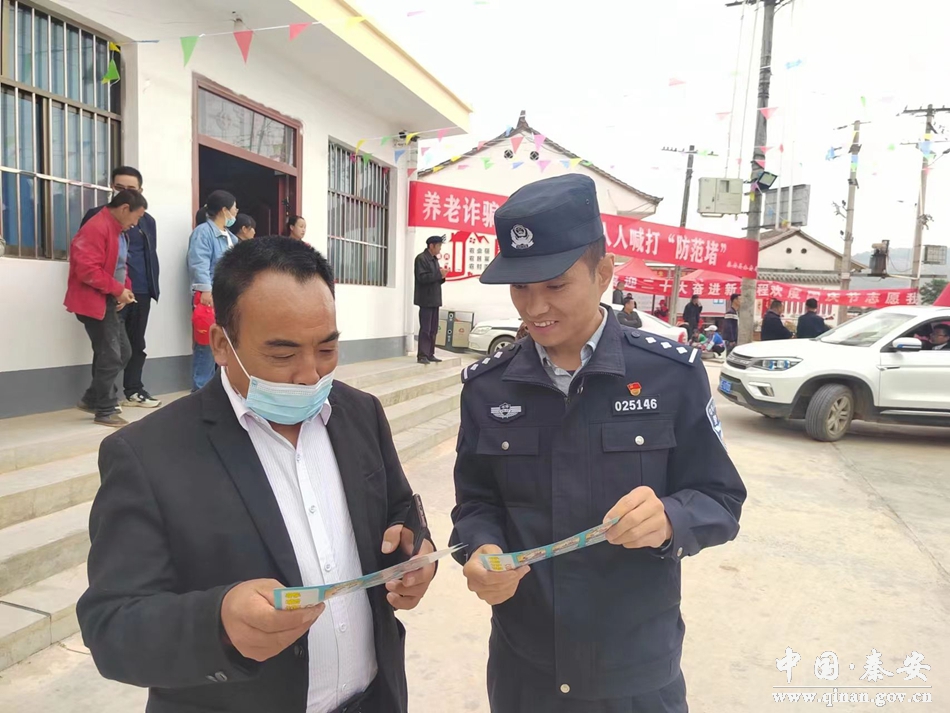 为进一步营造打击整治养老诈骗专项行动浓厚氛围,提升老年人的识骗防骗能力,保护人民群众的财产安全。10月1日,秦安县公安局中山派出所组织民辅警开展了防范养老诈骗宣传活动。