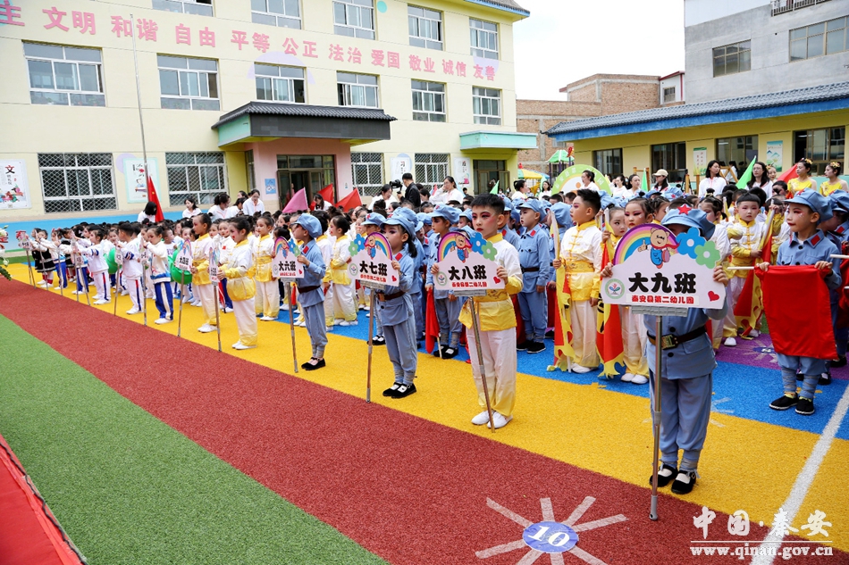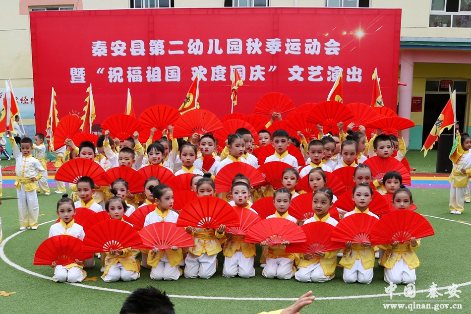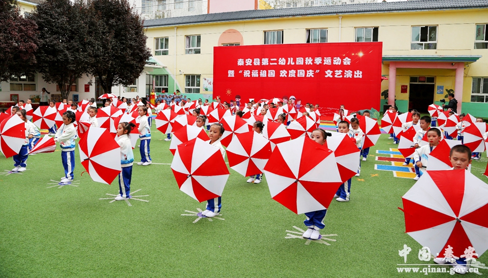 为丰富幼儿生活,增强幼儿体魄,以实际行动欢度国庆,喜迎党的二十大胜利召开,9月29日,秦安县第二幼儿园党支部组织全园教师、幼儿举办了“祝福祖国,欢度国庆”秋季运动会。