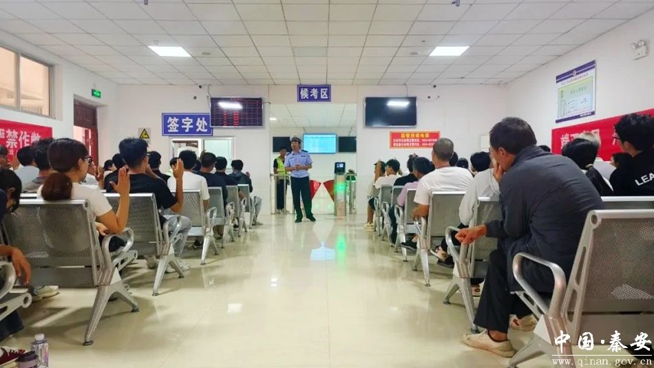 7月18日,秦安县公安局交警大队宣传民辅警走进辖区旭伟科目二考试场开展交通安全宣传活动,为驾校学员送上交通安全知识。