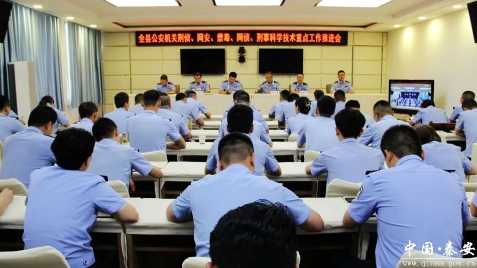 7月19日,秦安县公安局召开刑侦、网安、禁毒、网侦、刑事科学技术重点工作推进会。相关警种部门班子成员、全体民辅警参加会议。