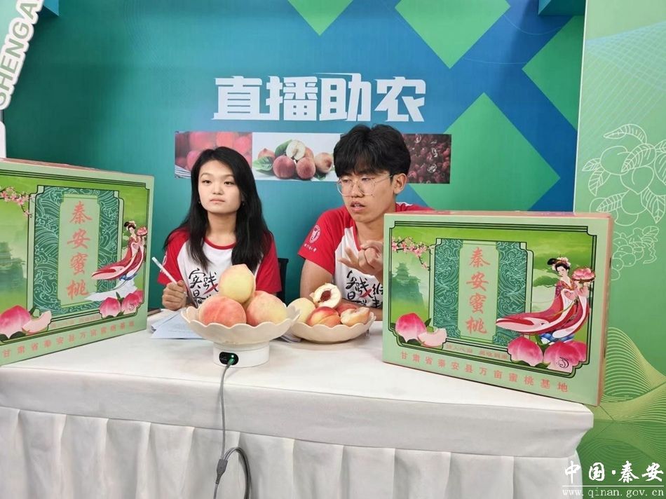 实践队成员们还深度采访了小寨村第一书记和秦洼村村支书。在村干部的介绍下,成员们了解了村子的发展历程与未来发展规划,并就电商发展这一议题与书记进行了深入探讨。成员们还走进直播间,化身“带货主播”,推广秦安蜜桃与花椒。他们饱含热情,以生动形象的语言介绍将蜜桃的甘甜、花椒的麻香展示在观众面前,让观众在屏幕前感受到来自秦安的美味,进一步提高了秦安农产品的知名度。“学生干直播比我们村里人干得好,我希望他们能够真正地推广秦安农产品,我也很看好他们。”秦安恒号跨境电子商务有限公司法人代表高新源说。