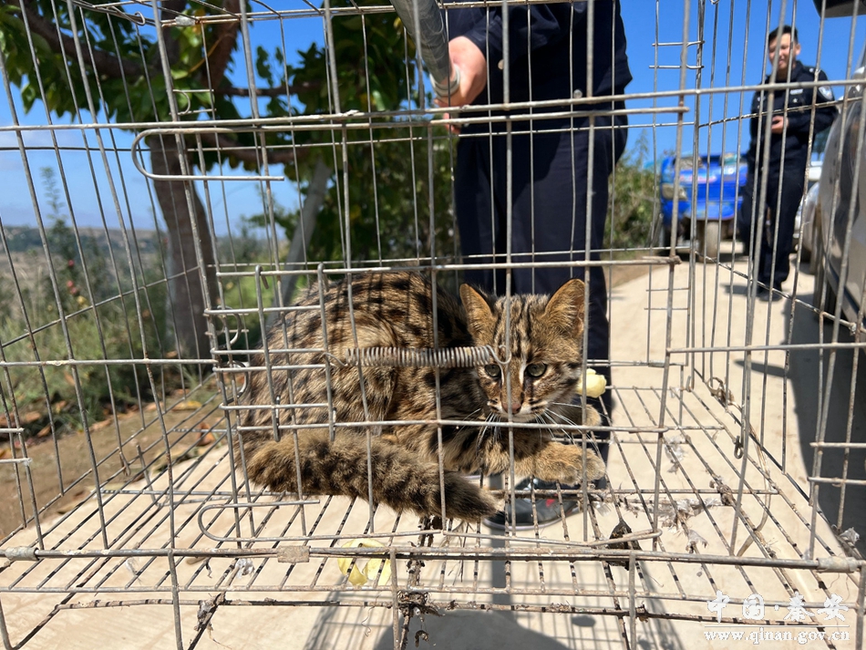 9月21日上午,秦安县公安局五营派出所及时救助一只国家二级保护动物“豹猫”。