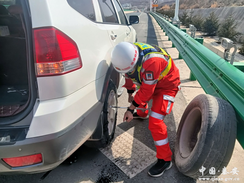 9月18日12时10分,平天高速公路天水清障救援一大队天水中队队员对辖区路段进行日常巡查,在巡查过程中发现G8513平天高速公路天水段天水方向k205处有一小车停于应急车道,巡查队员立即上前查看,发现该车为右后轮胎爆胎,车主是第一次遇到此类故障,显得格外紧张,一时不知道如何处置。随后巡查队员在做好安全防护的同时,安抚司机情绪,用随车工具帮助司机更换轮胎,并嘱咐司机下高速后一定要将备胎更换。更换过程中司机看到队员趴在地上深受感动,直夸救援队是高速公路的“好卫士”。