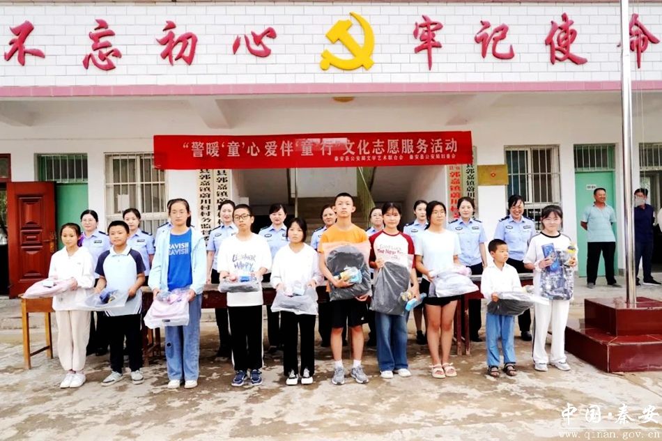 为深入推进公安文化建设,丰富警营文化生活,促进警民和谐关系。近日,秦安县公安局文学艺术联合会、秦安县公安局妇委会组织公安文联会员和“警察妈妈”代表,在县公安局定点帮扶的郭嘉镇孙坡、蔚川村联合开展了“警暖‘童’心 爱伴‘童’行”文化志愿服务活动。