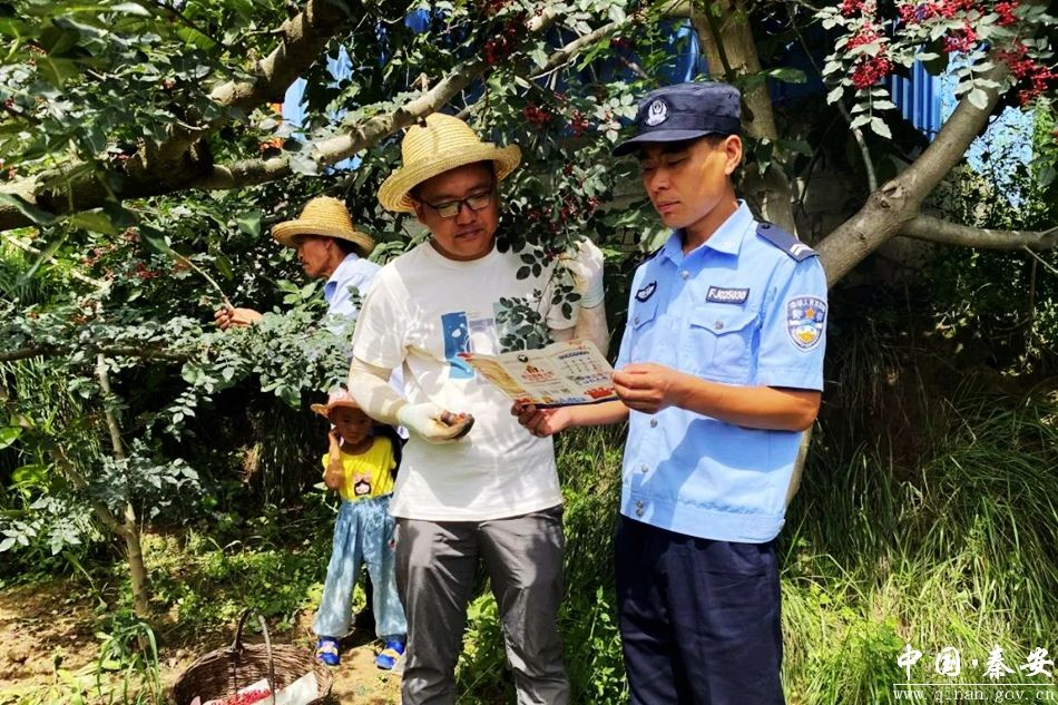 眼下,正值花椒成熟季,为全面做好护航辖区农业经济发展,预防和有效打击各类违法犯罪,做好农村交通安全隐患整治和矛盾纠纷排查化解等工作,秦安县公安局王窑派出所结合当前工作实际,于近日,组织民辅警深入椒园地头和乡村道路,开展了预防电信网络诈骗、道路交通安全等相关法律知识宣传工作。