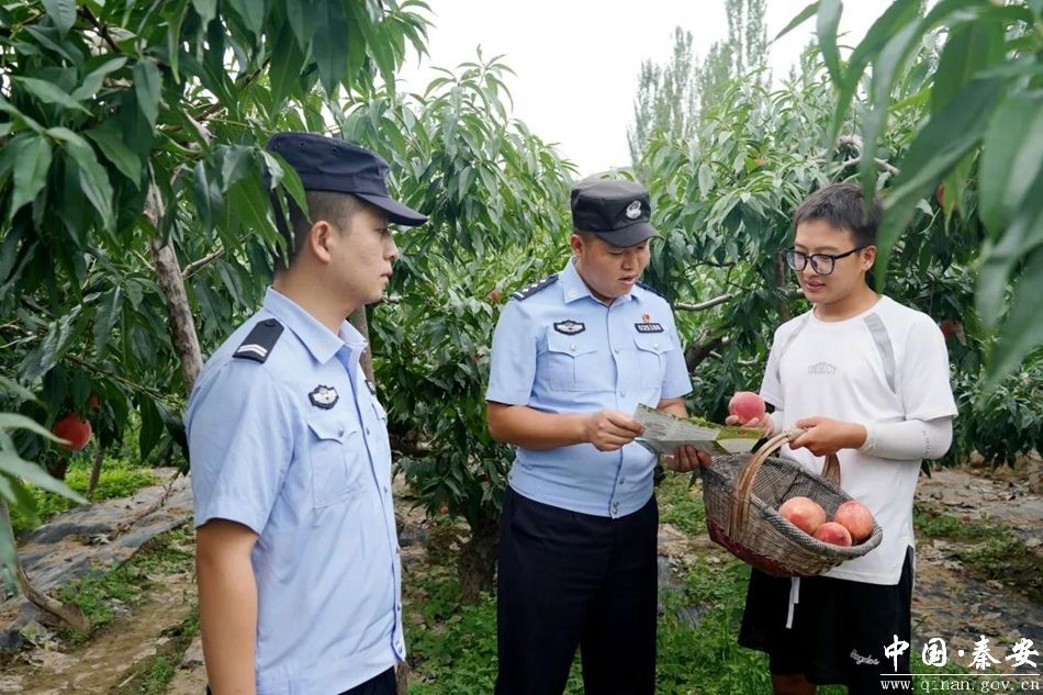 为全力护航辖区农业经济产业链健康发展,秦安县公安局紧密结合夏季治安打击整治行动,根据辖区产业特色,全面落实派出所主防责任,开启了“民生警务”模式,将警务前移至田间地头、果品交易市场和寄递业等行业领域,聚焦影响群众安全生产生活的矛盾纠纷、风险隐患、财产安全等治安问题,全力守护辖区“蜜桃经济”发展。