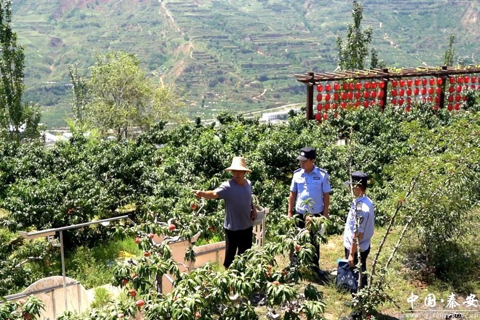 秦安县公安局根据当前蜜桃丰收季节社会治安和交通环境特点,按照“守点、巡线、控面、宣传”相结合的方式,针对可能发生的土地界限、果实归属、农商纠纷等矛盾问题,组织警力走进田间地头,深入了解果农的诉求,摸排潜在的矛盾纠纷、开展安全生产和法治宣传等活动,从源头上预防和消除了各类安全风险隐患。