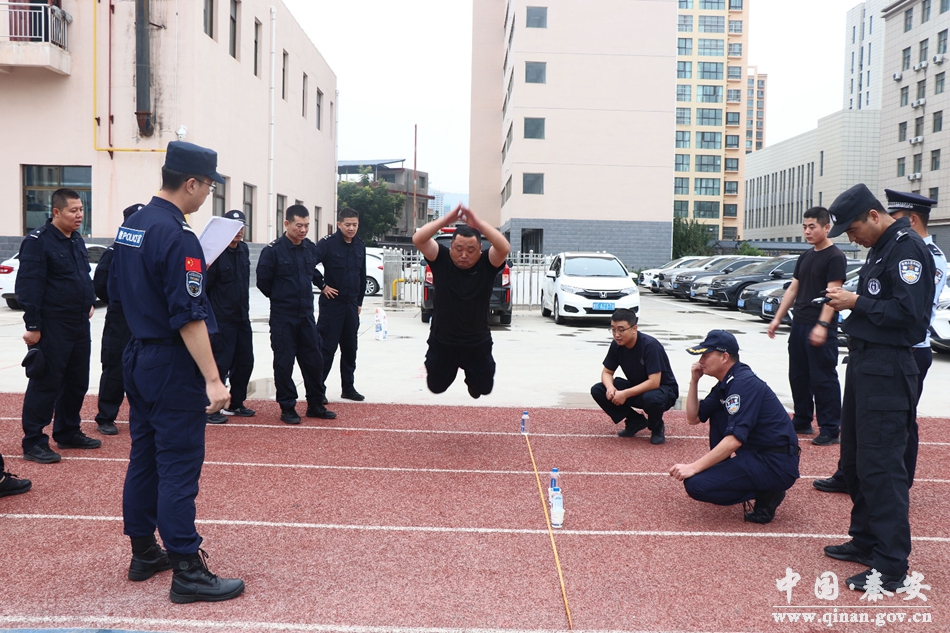 考核中,市局送教考核组对县公安局领导班子成员以整理着装、报告词、稍息、立正、跨立、停止间转法、敬礼礼毕、脱帽戴帽、蹲下起立、“三大步法”的行进与立定等科目为重点,以现场考核打分的方式对县公安局领导班子成员队列礼仪现场指挥进行了逐人考核。对新晋升警衔的10名民警,围绕立定跳远、25米X4往返跑、男子1000米等科目进行了综合体能测试。