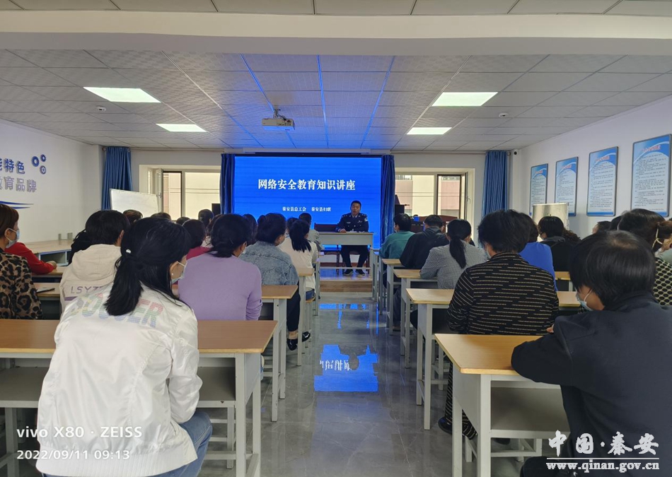 为进一步做好2022年国家网络安全教育宣传活动相关工作,促进全民共建网络安全,共享网络文明,增强广大职工网络信息安全意识。9月11日,秦安县总工会、县妇联、县公安局在秦安县乐邦家政技术培训学校开展“网络安全教育知识”讲座。80余名职工参加讲座。